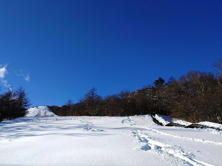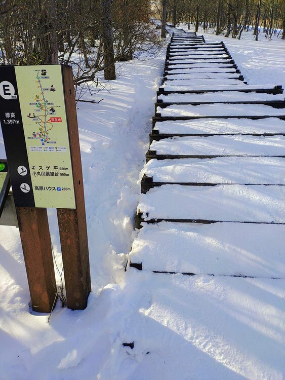 今朝の気温-3℃ 園内に積雪は殆んどありません。草原内に立ち入らないでください。スノーシューレンタル開始未定です。